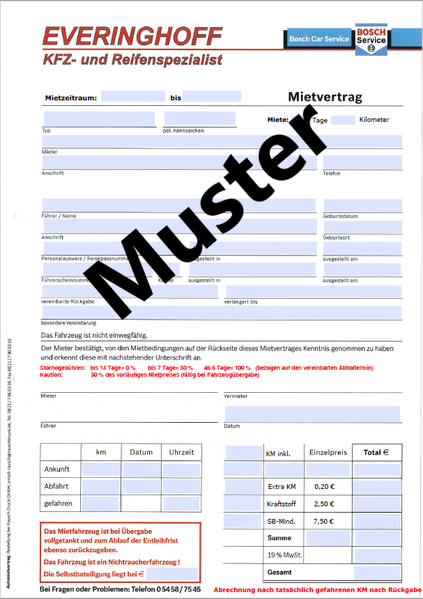 3.8 Eine Untervermietung des Fahrzeuges ist nicht gestattet.